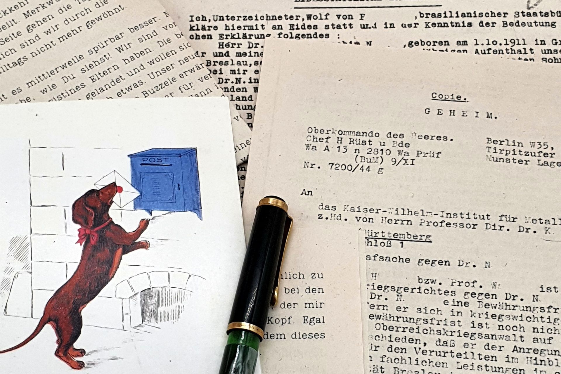 Im neunten Brief, geschrieben im Frühjahr 1947, zwei Jahre nach Ende des Krieges, schreibt Hajo an seine Schwester Gisela und schildert seine Lebenssituation in Neuhausen (Württemberg) nach seiner Rückkehr vom Bodensee. Er berichtet über seine Bemühungen, Nachweise über seine Inhaftierung wegen seiner politischen Haltung zu bekommen und trägt sich mit Auswanderungsplänen.
