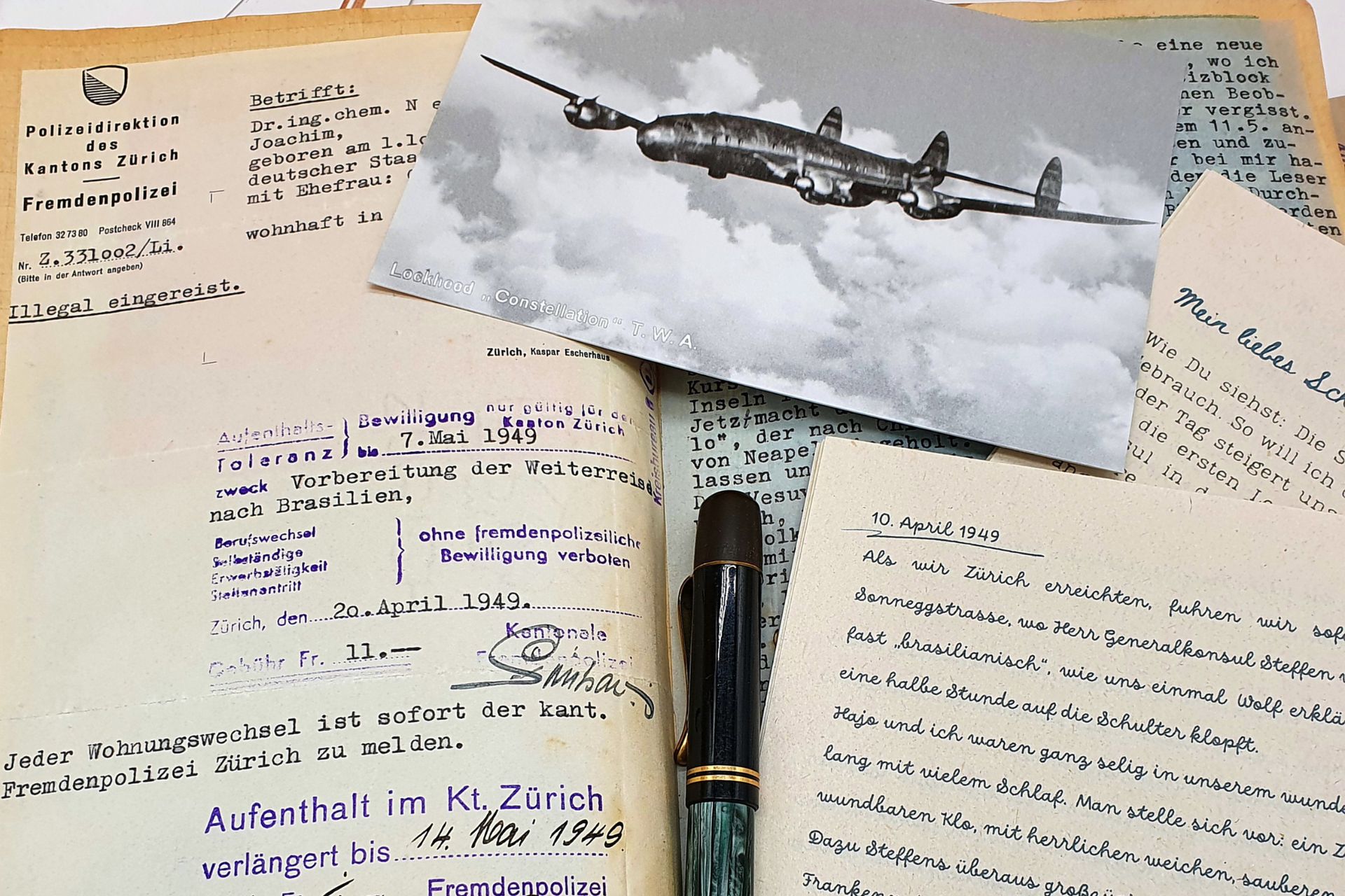 Im Brief No.13 berichtet Hajo seiner Schwester Gisela über die Schwierigkeiten bei der Visabeschaffung in Zürich. Die Zeit zum Erreichen des Schiffes in Italien wird immer knapper. Christines Tagebucheinträge lassen mitempfinden wie besonders es für beide war, nach den schweren Kriegs- und Nachkriegsjahren in Deutschland die vielen Angebote und den Komfort in der Schweiz zu erleben.